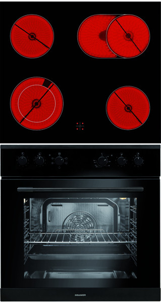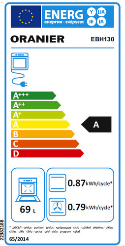 weitere Beheizungsarten: separate Oberhitze, separate Unterhitze, Ober-/Unterhitze mit Umluft, Unterhitze mit Umluft; Relingsystem verchromt, ORANIER CLEAN UP-Emaillierung, glatte Seitenwände, Backofentür komplett aushängbar, Türinnenscheiben herausnehmbar, Zubehör: 1 Grillrost, 1 Backblech