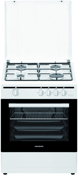 1 Starkbrenner (2900W), 2 Normalbrenner (je 1700W), 1 Hilfsbrenner (950W), elektrische Einhand-Funkenzündung, auf Erdgas eingestellt, umrüstbar auf Flüssiggas, Flussiggasdüsen-Set beiliegend, Gasbackofen: mit Kleinflächengrill, CLEAN UP-Emaillierung, 2-fach verglaste Backofentür mit herausnehmbarer Vollglasinnenscheibe, Schublade für Geschirr, Zubehör: 1 Grillrost, 1 Backblech; Abdeckhaube
