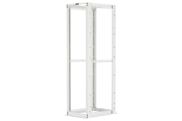 4-Posten-Racks vereinen die Stabilität eines Schranks und die Zugänglichkeit eines offenen Racks für maximale Flexibilität. Das 45-RU-Rack ist insgesamt 23 Zoll breit (mit 19-Zoll-Standard-EIA-Befestigung) und 36 Zoll tief. Es verfügt über anpassbare Montageschienen mit Käfigmutter, EIA Universal-Befestigungslochintervall und vorgedruckte Nummerierung. Das Rack ist mit verschiedenen Kabelführungen und Zubehör kompatibel. Das Rack ist für 2.500 lbs Ul-gelistet und besteht aus einer geschweißten Stahlkonstruktion. Das Rack ist weiß.