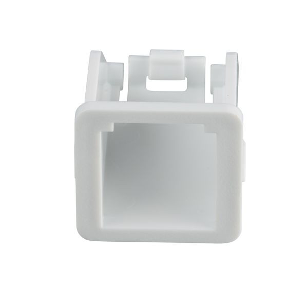 Der Mini-Com™ Adapter rastet in 0,827 x 0,827 (21mm x 21mm) große Öffnungen ein und nimmt ein Mini-Com™ Modul auf. Plattenstärke sollte 0,016 bis 0,056 (1,17mm bis 1,42mm) sein. Der Adapter ist weiß.