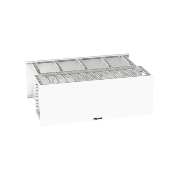 The NetManager™ High Capacity Horizontal Cable Manager cost-effectively organizes and protects copper and fiber network cabling in any standard EIA 19 inch (483mm) rack or cabinet. Large front finger openings easily accommodate Cat 6 and 6A cables, reducing installation time and maintenance costs. The dual-sided manager is 4 RU and has hinged front and rear covers. The manager is white.