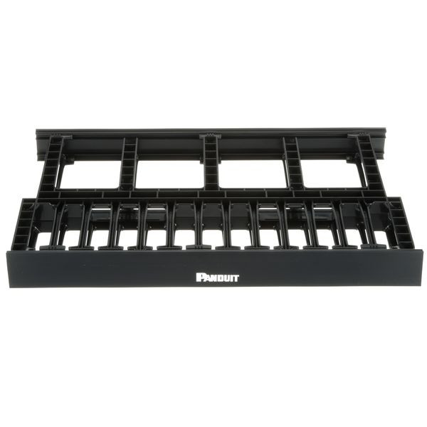 Die horizontale NetManager™ Kabelführung für hohe Kapazität organisiert und schützt kosteneffektiv Kupfer- und Glasfaserkabel in jedem standardmäßigen EIA 19" (483mm)-Rack oder Schrank. Große Öffnungen an den vorderen Fingern ermöglichen die komfortable Aufnahme von Kabeln der Kategorie 6 und 6A, wodurch sich Installationszeit und Instandhaltungskosten verringern lassen. Die zweiseitige Kabelführung ist 1 RU und verfügt über vordere und hintere Abdeckungen mit Scharnieren. Die Führung ist schwarz.
