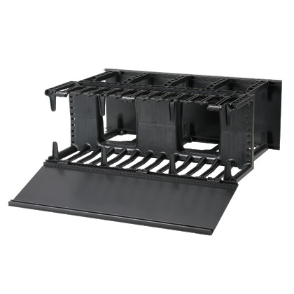 Die horizontale NetManager™ Kabelführung für hohe Kapazität organisiert und schützt kosteneffektiv Kupfer- und Glasfaserkabel in jedem standardmäßigen EIA 19" (483mm)-Rack oder Schrank. Große Öffnungen an den vorderen Fingern ermöglichen die komfortable Aufnahme von Kabeln der Kategorie 6 und 6A, wodurch sich Installationszeit und Instandhaltungskosten verringern lassen. Die zweiseitige Kabelführung ist 4 RU und verfügt über vordere und hintere Abdeckungen mit Scharnieren. Die Führung ist schwarz.
