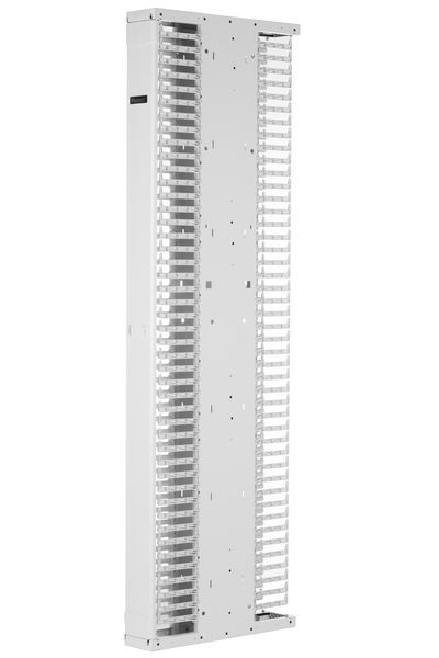 The PatchRunner™ 2 Enhanced Vertical Cable Manager pairs ultra-high-density capability and versatility with its unique zero RU patching feature. The partially assembled manager installs easily to speed up deployment. The dual-sided manager has a metal backbone with molded plastic fingers, and includes one full-length metal, dual-hinging, push-to-close door. The manager is 52 RU, 6 inches wide, 6 bonus vertical RU, and is white.