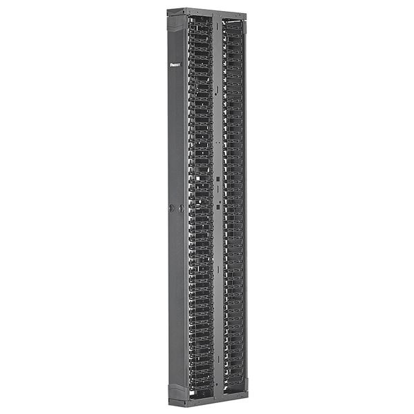 Die vertikale PatchRunner™ 2 Kabelführung verbindet hohe Dichte mit Vielseitigkeit und minimiert den Platzbedarf. Die vollständig vormontierte Kabelführung senkt die Gesamtkosten. Die Zweiseiten-Kabelführung hat einen Metall-Backbone mit aus Kunststoff vorgeformten Fingern; zwei Metalltüren voller Länge (2 Scharniere), die durch Zudrücken geschlossen werden. Die Führung ist 52 RU, 8 Zoll breit, Farbe Schwarz.