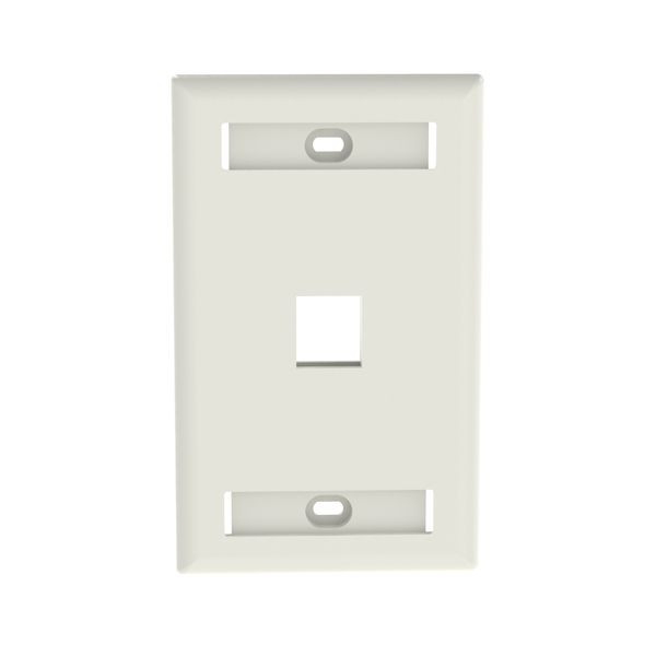 Die NetKey® Geräteblende nimmt ein Keystone-Modul auf. Die Ein-Band-Geräteblende wird an einer NEMA-Standard-Ein-Band-Öffnung montiert. Eine Etiketttasche vereinfacht die Identifikation der weißen Geräteblende.