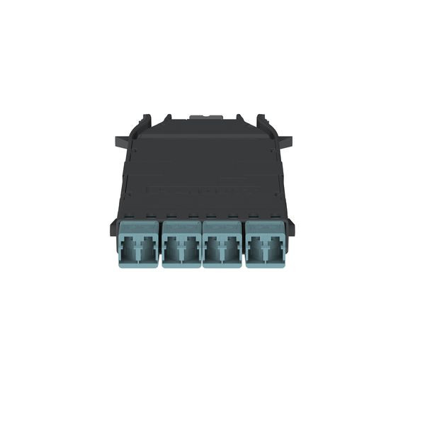 Die HD Flex™ 4-auf-1-Durchbruch-Kassette ist OM4 MPO bis LC und unterstützt insgesamt 8 Fasern. Verfügt über eine besonders niedrige Einfügedämpfung mit Polarität nach Methode B. Die 4-Port-Kassette verfügt über eine schwarze Abdeckung mit einem anthraziten MPO-Verbinder und 4 Duplex LC-Adaptern (aqua), integrierte Klappen schützen vor Kontamination.