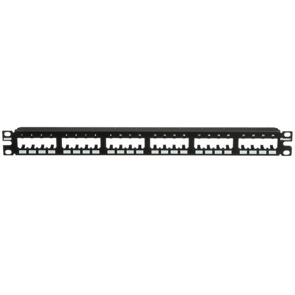Das modulare Mini-Com™ Patchpanel mit bündiger Montage nimmt in 1 RU für ungeschirmte Anwendungen 24 Mini-Com™-Module auf und lässt sich in 19-Zoll- und 23-Zoll-Racks und -Schränken montieren. Das Panel wird bündig am Rack montiert, kann mit Klebstreifen gekennzeichnet werden und ist schwarz.