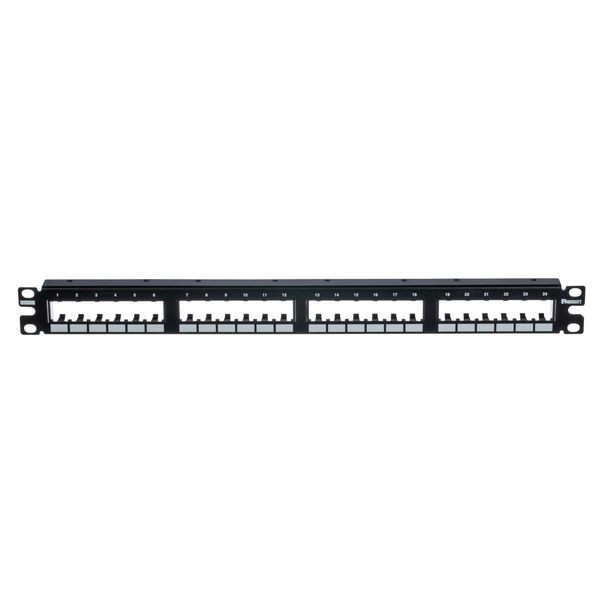Das modulare Mini-Com™ Patchpanel mit bündiger Montage nimmt in 1 RU für ungeschirmte Anwendungen 24 Mini-Com™-Module auf und lässt sich in 19-Zoll- und 23-Zoll-Racks und -Schränken montieren. Das Panel wird bündig am Rack montiert und kann mit Klebstreifen gekennzeichnet werden, Ports gruppiert in 6, Farbe Schwarz.