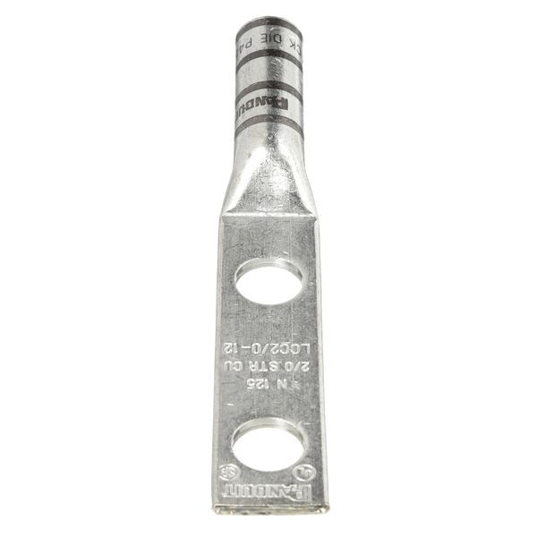 Zwei Löcher, langer Trommelkabelschuh, 2/0-AWG-Kabel, 1/2 Schraubloch, Lochabstand 1,75.