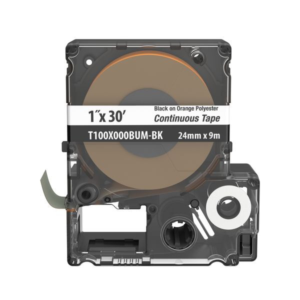 Die Kassette T100X000BUM-BK mit durchlaufendem Band beinhaltet sowohl Etikettenmaterial als auch Band für das einfache Wechseln der Etiketten. Benutzerdefinierte Rohrmarkierungen, Spannungsmarkierungen, Schilder, Behältermarkierungen und Netzwerkkennzeichnungsetiketten auf Anfrage. Nur für flache Etikettenanwendungen. Zur Verwendung mit MP300, MP200- und MP100-Druckern. Polyester. 1,0" x 30' (25,4 mm x 9,1 m). Farbe Schwarz auf Orange. 1 Kassette pro Packung.