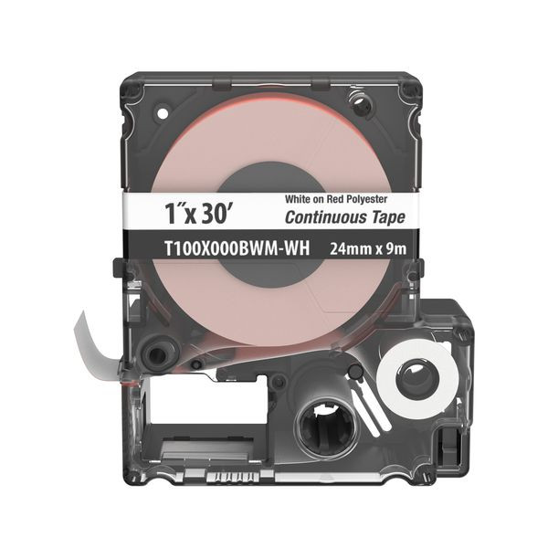 Die Kassette T100X000BWM-WH mit durchlaufendem Band beinhaltet sowohl Etikettenmaterial als auch Band für das einfache Wechseln der Etiketten. Benutzerdefinierte Rohrmarkierungen, Spannungsmarkierungen, Schilder, Behältermarkierungen und Netzwerkkennzeichnungsetiketten auf Anfrage. Nur für flache Etikettenanwendungen. Zur Verwendung mit MP300, MP200- und MP100-Druckern. Polyester. 1,0" x 30' (25,4 mm x 9,1 m). Farbe Weiß auf Hellrot. 1 Kassette pro Packung.