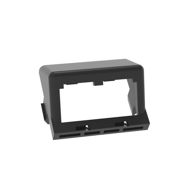 Der angewinkelte Mini-Com™ Moduleinsatz, Größe 1/2 nimmt zwei Mini-Com™-Module auf, Montage auf Blendrahmen, Farbe Schwarz.