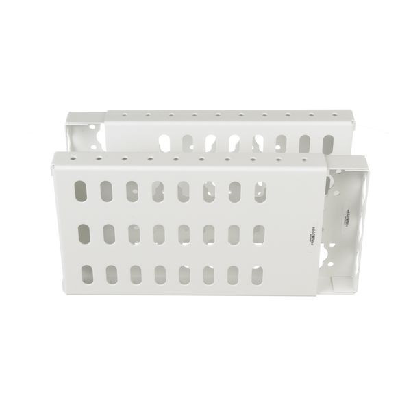 Das PDU-Halterungsset wird vertikal an Stromversorgungseinheiten (PDUs) an der Rückseite von 2-Posten-Racks oder an den hinteren Geräteschienen der 4-Posten-Racks montiert. Das Set beinhaltet ein weißes Halterungspaar aus Stahl.
