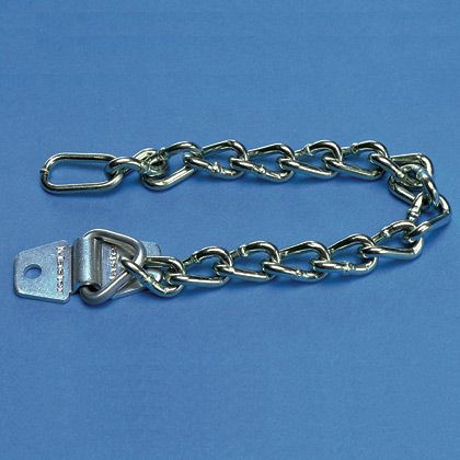 Schwerlastfähige verzinkte Stahlkette mit beigefügtem Kettenhalter.