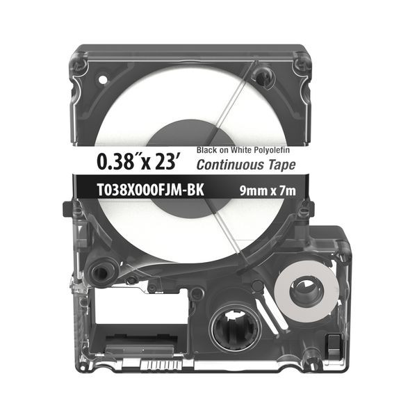 Die Kassette T038X000FJM-BK mit durchlaufendem Band beinhaltet sowohl Etikettenmaterial als auch Band für das einfache Wechseln der Etiketten. Zur Verwendung mit MP75-, MP100-, MP200- und MP300-Druckern. Polyolefin. 0,38" x 23' (9,7 mm x 7 m). Farbe Schwarz auf Weiß. 1 Kassette pro Packung.