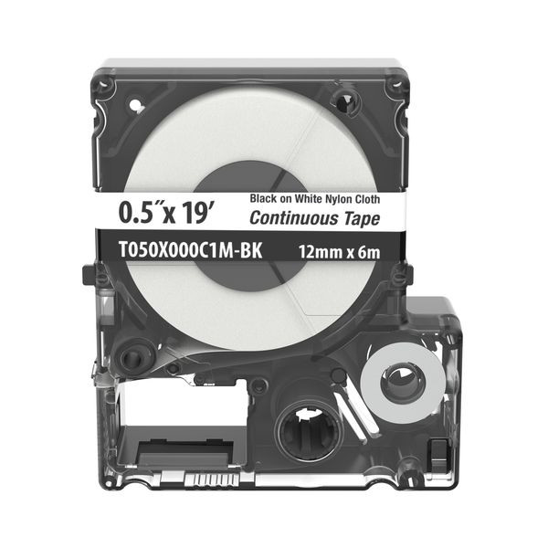 Die Kassette T050X000C1M-BK mit durchlaufendem Band beinhaltet sowohl Etikettenmaterial als auch Band für das einfache Wechseln der Etiketten. Zur Verwendung mit MP75, MP200- und MP300-Druckern. Nylontuch. 0,50" x 19' (12 mm x 6 m). Farbe Schwarz auf Weiß. 1 Kassette pro Packung.