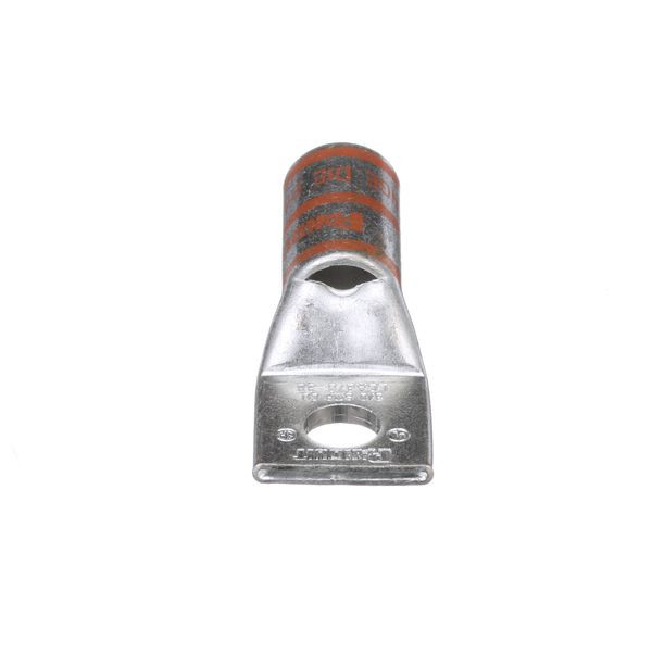 Der verzinkte Kupfer-Presskabelschuh LCA3/0-38-X, ein Loch, Standard-Barrel, verfügt über farbcodierte Barrels mit angegebenen Stempelindexnummern von Panduit und Wettbewerbern für die korrekte Auswahl der Crimpbacke. Ein Inspektionsfenster dient zur Sichtprüfung des Leiters auf richtigen Sitz und das verzinnte Material hemmt die Korrosion. UL-gelistet und CSA-zertifiziert bis 35 KV und UL-Temperaturbemessung 90 °C