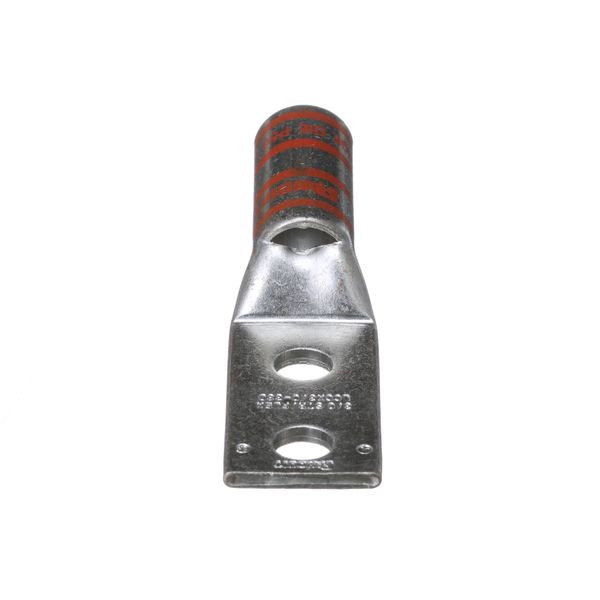 Zwei Löcher, flexible Hülse, langer Trommelkabelschuh, 3/0-AWG-Kabel, 3/8 Schraubloch, ein Lochabstand.