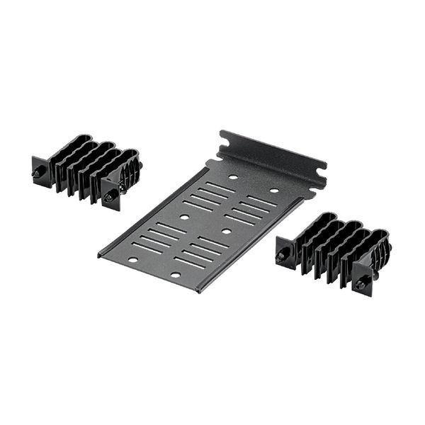 Der universale HD Flex-Rückseiten-Kabelmanager umfasst zwei Übergangsmanager mit 18 Positionen und einer Halterung für die Schraubmontage. Schwarz.
