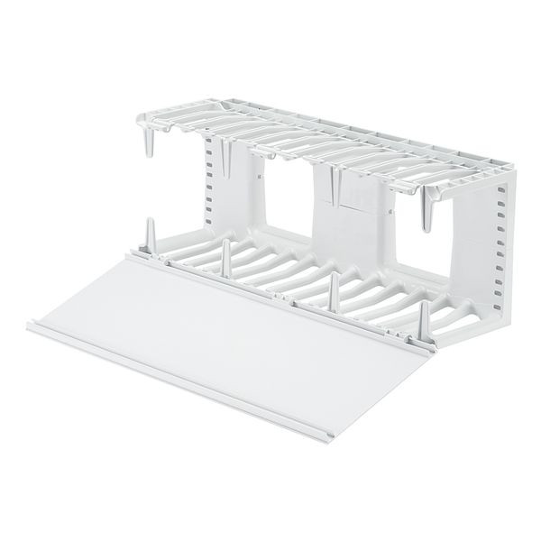 Die horizontale NetManager™ Kabelführung für hohe Kapazität organisiert und schützt kosteneffektiv Kupfer- und Glasfaserkabel in jedem standardmäßigen EIA 19" (483mm)-Rack oder Schrank. Große Öffnungen an den vorderen Fingern ermöglichen die komfortable Aufnahme von Kabeln der Kategorie 6 und 6A, wodurch sich Installationszeit und Instandhaltungskosten verringern lassen. Die Einseiten-Kabelführung ist 3 RU und verfügt nur über eine aufklappbare vordere Abdeckung. Die Führung ist weiß.