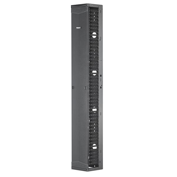 Die vertikale PatchRunner™ 2 Kabelführung paart besonders hohe Dichte mit Vielseitigkeit und minimiert den Platzbedarf. Die vollständig vormontierte Kabelführung senkt die Gesamtkosten. Die Einseiten-Kabelführung hat einen Metall-Backbone mit aus Kunststoff vorgeformten Fingern; eine Metalltür voller Länge (2 Scharniere), die durch Zudrücken geschlossen werden. Die Führung ist 52 RU, 12 Zoll breit, Farbe Schwarz.