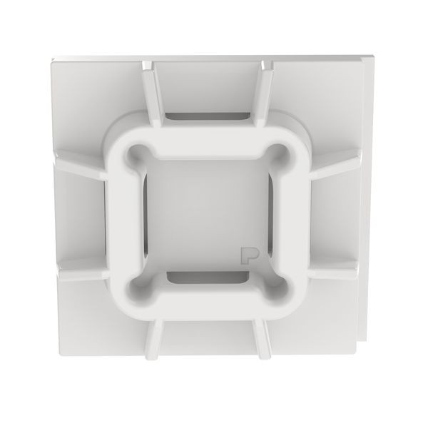 Die klebbare Befestigung in Weiß wird mit Gummiklebeband befestigt und hat die Maße 2" x 2" (50,8 mm x 50,8 mm). Das Material ist Nylon 6.6, das mechanische Stärke, Hitze- und Abnutzungsbeständigkeit und Steife verstärkt. Konzipiert für den Einsatz in Innenbereichen und erhältlich in Packungen zu je 50 Stück.