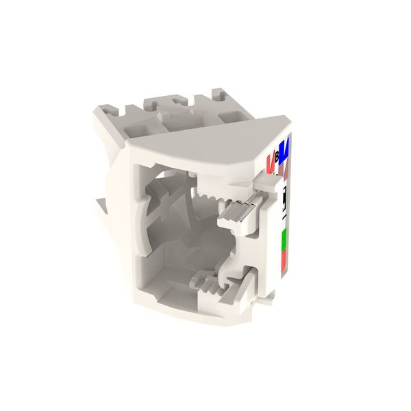 Kurzbeschreibung Abgewinkelte Drahtabdeckung, 45°, für TG-Buchse Cat 6 UTP