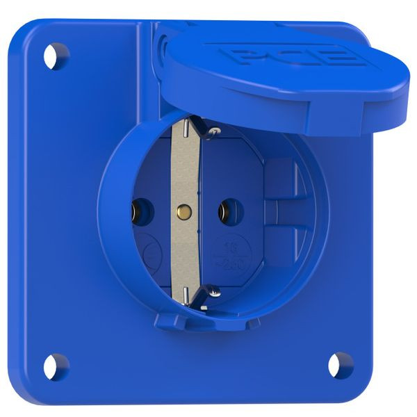 Schutzkontakt-Anbausteckdose Serie S-NOVA; Gehäusematerial: PA6, Farbe: blau; Flanschabmessungen: 75x75 mm; Anschluss: Schraubklemme, rückwärtig; System: österr./deutsch. Schutzkontaktsystem mit Dichtrand; Kontakte: vernickelte Kontakte; 250V / 16A / 2P+E , Schutzart: IP54