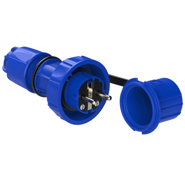 | Kurzbeschreibung | Schutzkontaktstecker mit Schutzkappe IP66/68 (blau) |
