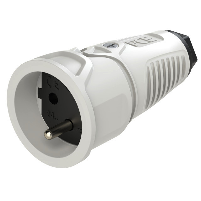 Schutzkontaktkupplung Serie TAURUS2 - Gummi; Farbe (Haube/Ring): hellgrau/schwarz; Material (Haube/Kontaktträger): TPE/PA6; Schutzkontaktsystem: franz./belg. ; 16A / 250V AC / 3p (2P+E), Schutzart: IP20