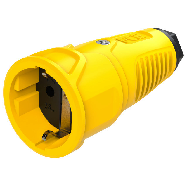 Schutzkontaktkupplung Serie TAURUS2 - Vollgummi; Farbe (Haube/Ring): gelb/schwarz; Material (Haube/Kontaktträger): TPE/TPE; Schutzkontaktsystem: österr./deutsch ; 16A / 250V AC / 3p (2P+E), Schutzart: IP20