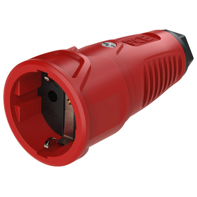 Schutzkontaktkupplung Serie TAURUS2 - Vollgummi; Farbe (Haube/Ring): rot/schwarz; Material (Haube/Kontaktträger): TPE/TPE; Schutzkontaktsystem: österr./deutsch ; 16A / 250V AC / 3p (2P+E), Schutzart: IP20