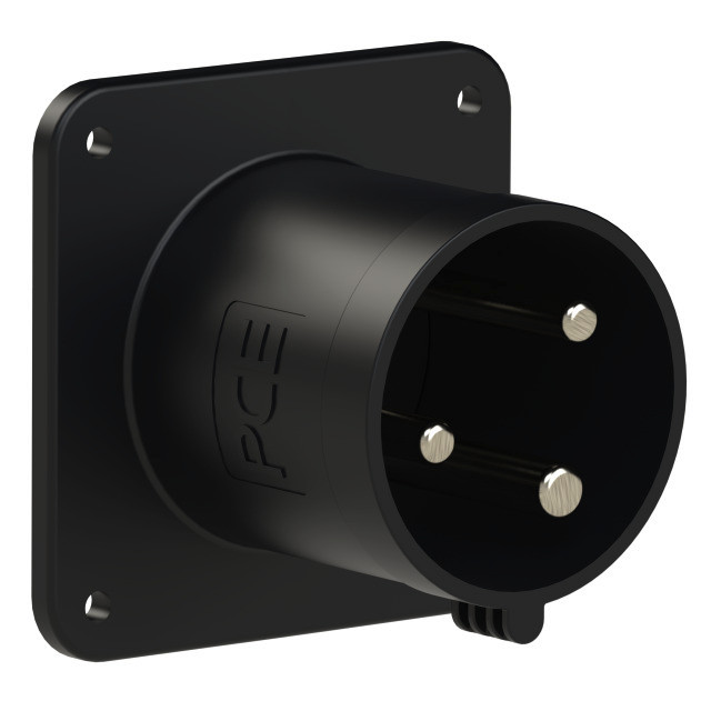 CEE-Anbaugerätestecker gerade 63A 3p 7h IP44 POWER TWIST; Gehäusematerial: PA6; Nennstrom: 63A; Polzahl: 3 (2P+PE); Uhrzeit-Stellung: 7h; Nennspannung/Frequenz: 480-500V~ / 50+60Hz; Kontakte: Messing vernickelt, mit Pilotkontaktstift; Anschlusstechnik: Rahmenklemmen mit Schrauben; Abmessungen (Flansch/Bohrung): 100x100 mm / 80x80 mm; Schutzart: IP44