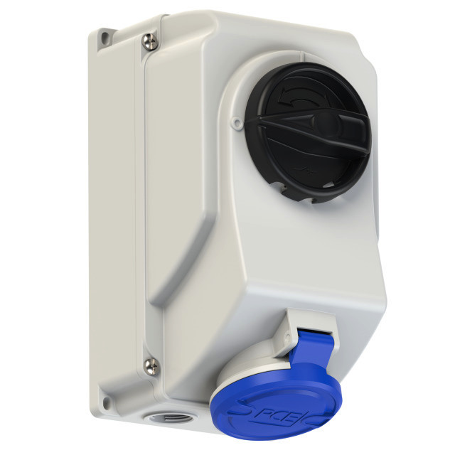 CEE-Steckdose abschaltbar 16A 5p 9h IP44/IP54; Gehäusematerial: PC/ABS; Nennstrom: 16A; Polzahl: 5 (3P+N+PE); Uhrzeit-Stellung: 9h; Nennspannung/Frequenz: 120/208V~ - 144/250V~ / 50+60Hz; Kontakte: Messing vernickelt; Anschlusstechnik: Schraubklemmen; Abschaltbare Wanddose, mechanisch verriegelt; Schalter: EIN/AUS PCE-Merz ML0; EN 60947-3; AC22A, 10kA; Leitungseinführung von oben, unten oder hinten (inkl. Blindverschraubung); Schutzart: IP44/IP54