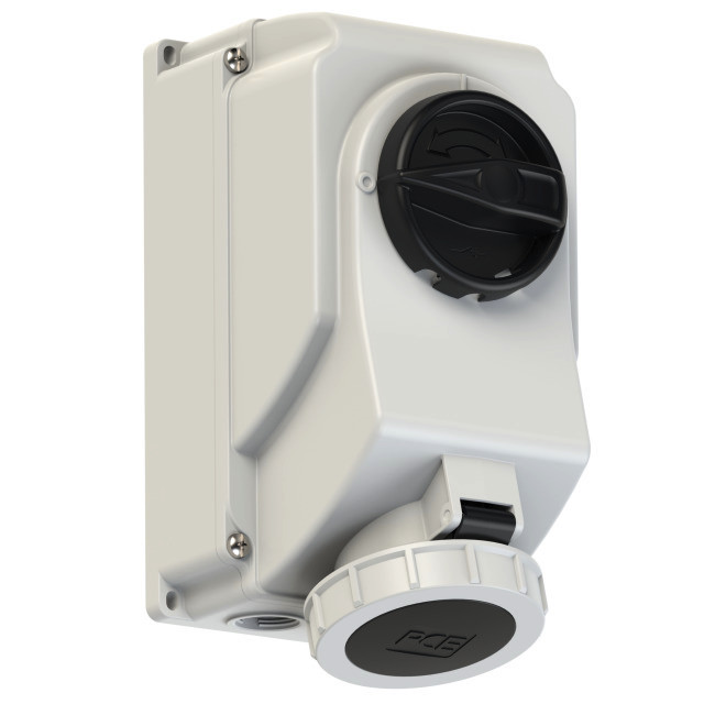 CEE-Steckdose abschaltbar 32A 4p 7h IP66/IP67; Gehäusematerial: PC/ABS; Nennstrom: 32A; Polzahl: 4 (3P+PE); Uhrzeit-Stellung: 7h; Nennspannung/Frequenz: 480-500V~ / 50+60Hz; Kontakte: Messing vernickelt; Anschlusstechnik: Schraubklemmen; Abschaltbare Wanddose, mechanisch verriegelt; Schalter: EIN/AUS PCE-Merz ML0; EN 60947-3; AC22A, 10kA; Leitungseinführung von oben, unten oder hinten (inkl. Blindverschraubung); Schutzart: IP66/IP67