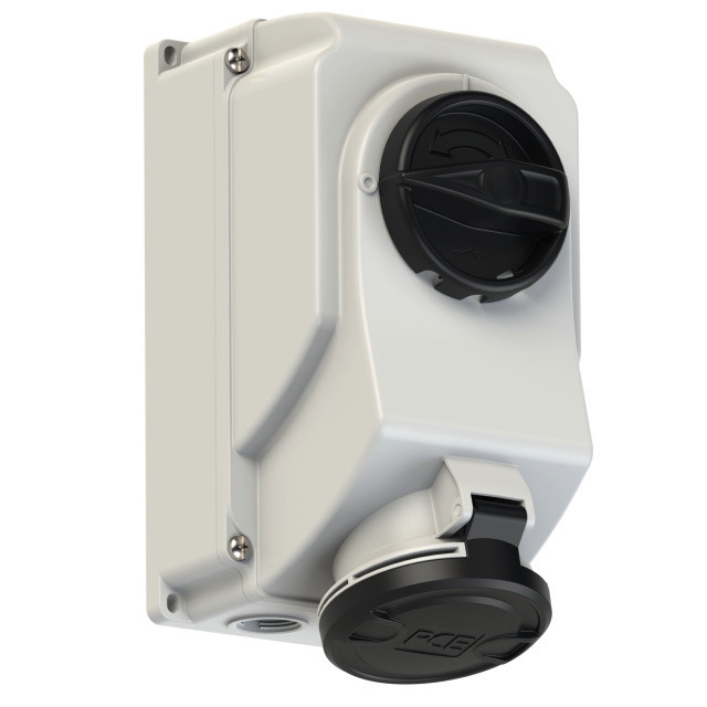 CEE-Steckdose abschaltbar 32A 5p 7h IP44/IP54; Gehäusematerial: PC/ABS; Nennstrom: 32A; Polzahl: 5 (3P+N+PE); Uhrzeit-Stellung: 7h; Nennspannung/Frequenz: 277/480V~ - 288/500V~ / 50+60Hz; Kontakte: Messing vernickelt; Anschlusstechnik: Schraubklemmen; Abschaltbare Wanddose, mechanisch verriegelt; Schalter: EIN/AUS PCE-Merz ML0; EN 60947-3; AC22A, 10kA; Leitungseinführung von oben, unten oder hinten (inkl. Blindverschraubung); Schutzart: IP44/IP54