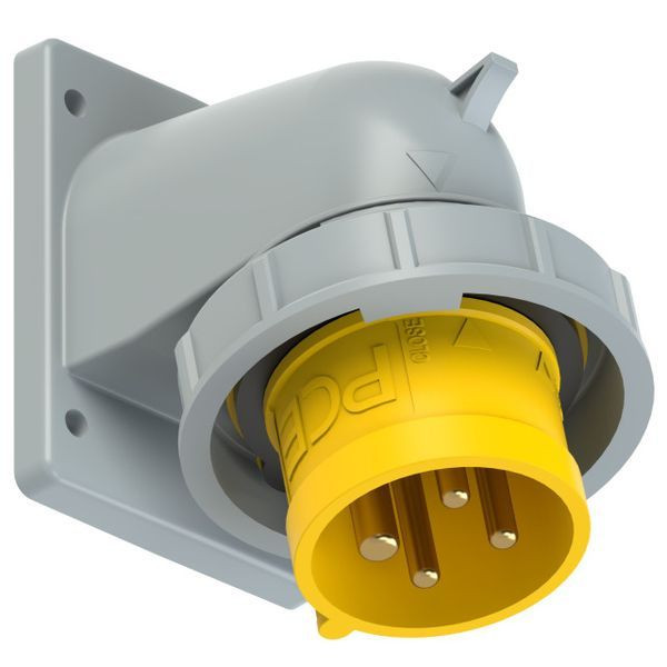 CEE-Anbaugerätestecker Winkel 32A 4p 4h IP67 TT; Gehäusematerial: PC/ABS; Nennstrom: 32A; Polzahl: 4 (3P+PE); Uhrzeit-Stellung: 4h; Nennspannung/Frequenz: 100-130V~ / 50+60Hz; Kontakte: Messing; Anschlusstechnik: schraublose Anschlusstechnik (TT); Schutzart: IP67