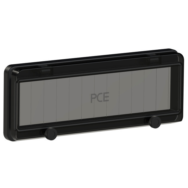 Klappfenster 13TE IP66/IP67 (schwarz); Material (Scheibe/Rahmen): Polycarbonat/PC-ABS; Abmessungen (BxHxT): 247x93x25mm; Schutzart: IP66/67