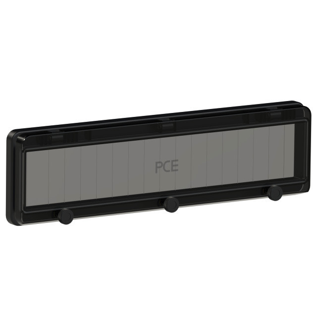 Klappfenster 18TE IP66/IP67 (schwarz); Material (Scheibe/Rahmen): Polycarbonat/PC-ABS; Abmessungen (BxHxT): 337x93x25mm; Schutzart: IP66/67