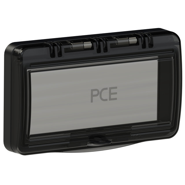 Klappfenster 8TE IP44/IP54 (schwarz); Material (Scheibe/Rahmen): Polycarbonat/PC-ABS; Abmessungen (BxHxT): 164x97x27mm; Schutzart: IP44 (horizontal), IP54 (vertikal)