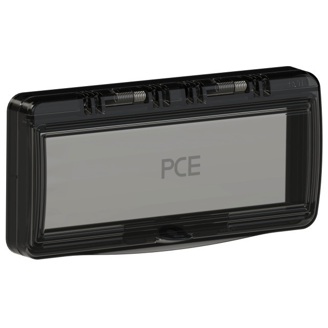 Klappfenster 10TE IP44/IP54 (schwarz); Material (Scheibe/Rahmen): Polycarbonat/PC-ABS; Abmessungen (BxHxT): 200x97x27mm; Schutzart: IP44 (horizontal), IP54 (vertikal)
