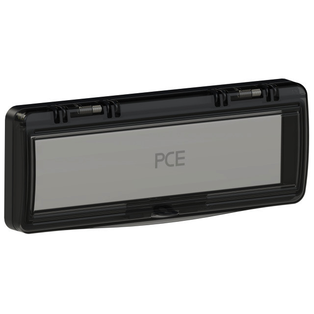 Klappfenster 13TE IP44/IP54 (schwarz); Material (Scheibe/Rahmen): Polycarbonat/PC-ABS; Abmessungen (BxHxT): 253x97x27mm; Schutzart: IP44 (horizontal), IP54 (vertikal)