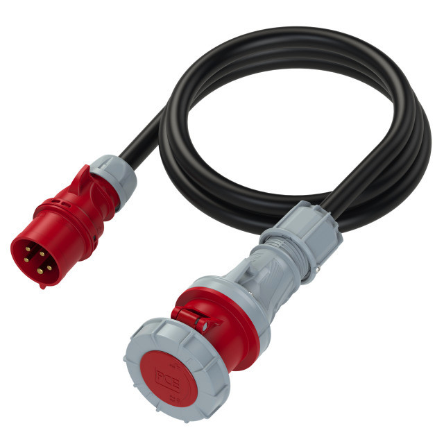1m Verlängerungsleitung H07RN-F 5G6qmm schwarz; komplett mit 1xCEE-Stecker 32A 5p 400V und 1xCEE-Kupplung 63A 5p 400V