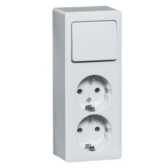 | Kurzbeschreibung | Aufputz-Kombination Aufputz 2x Steckdose mit Erde, 2-polig, Universalschalter, weiß |