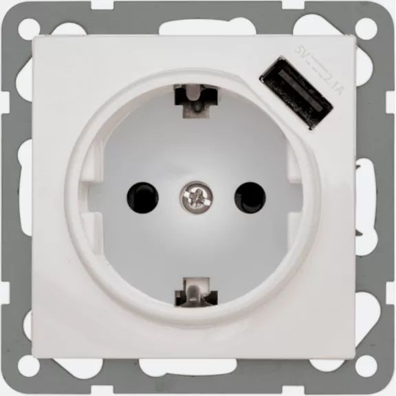 | Kurzbeschreibung | universelle USB-Steckdose SCHUKO mit Steckkontakten, 2, 1 A, weiß |