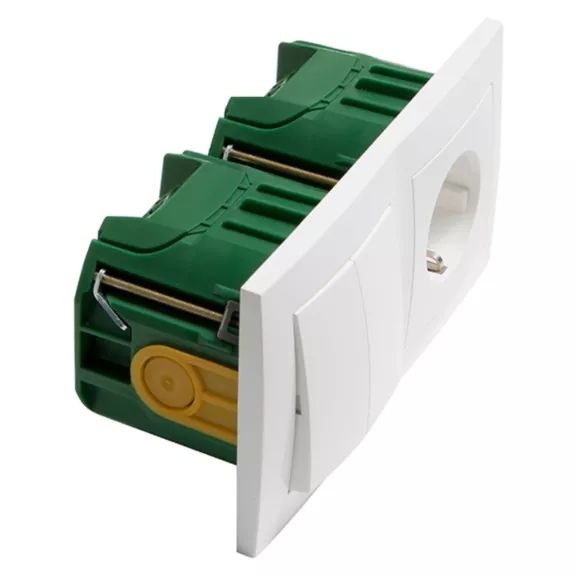 | Kurzbeschreibung | Badora Socketline Wippschalter Universalschalter, SCHUKO Wandsteckdose, Schraubkontakte, 2-polig, living white |