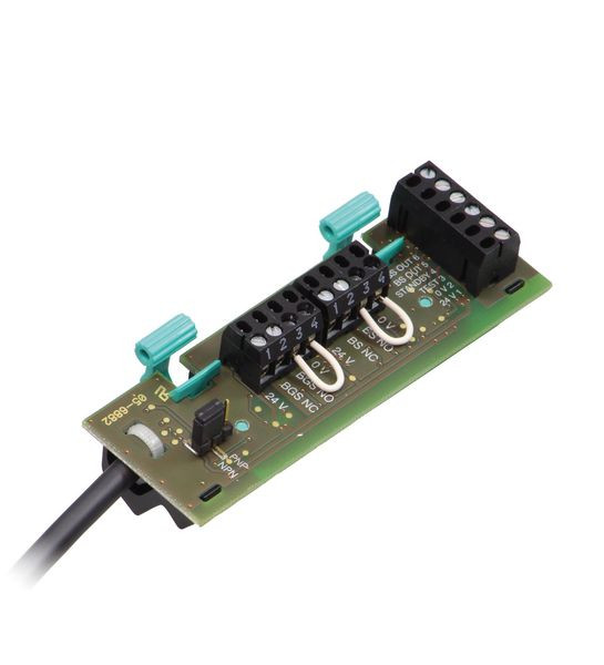 Sensormodul für konfigurierbaren Anwesenheitssensor DoorScan®, Umwandlung Halbleitersignale in Relaisausgangssignale, Werkzeuglose Modulmontage durch Snap-In-Mechanik, Betriebsspannung: 24 V DC ± 20 %, Signalausgang: Bandseite (BS): Relais, 1 Wechsler , Bandgegenseite (BGS): Relais, 1 Wechsler, Anschluss: Steckerleiste , 6-polig Interface , 4-polig Relaisversorgung