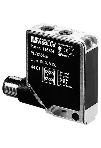 Reflexionslichtschranke für Glaserkennung, Kleine Bauform, Reichweite 5,6 m, Rotlicht, Hell-/Dunkelschaltung, PNP-Ausgang, externes TEACH-IN, Stecker M12, Lichtschrankenserie im weit verbreiteten Standardgehäuse, Zuverlässige Erfassung spiegelnder Objekte und Klarglas, Teach-In Schalter zur Einstellung der Kontrasterkennungsstufen, Automatische Nachregelung bei Verschmutzung im Kontrasterkennungsbetrieb, Hohe Stabilität durch Metallgehäuserahmen