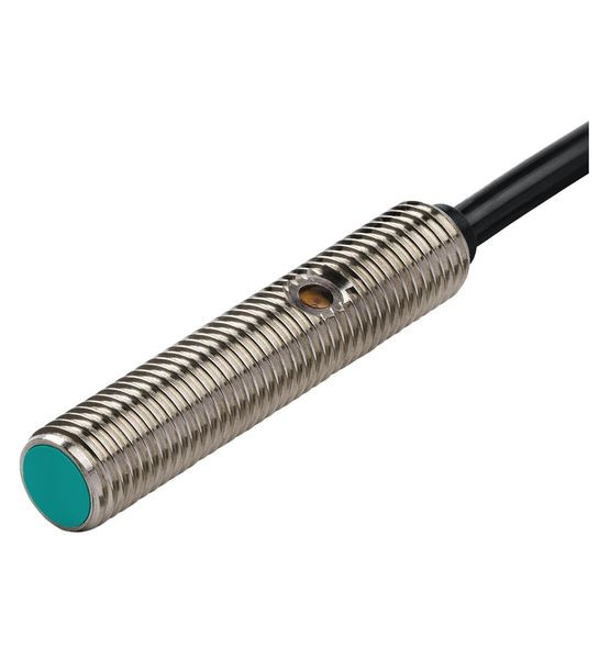 Schaltfunktion: Schließer (NO), Ausgangstyp: PNP, Einbau: bündig, Ausgangspolarität: DC, Ausgangsart: 3-Draht, Gewindeform: M8, Bauform: Zylinder, Gewinde, Baureihe: Zylinderförmig, Spannungsart: DC, Anschlussart: Festkabel mit Stecker, Gehäusematerial: Edelstahl 1.4305 / AISI 303 (V2A), Schutzart: IP67, Gewinde: M12 x 1, Material: PUR